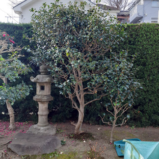 上記写真は乙女椿の手入れのビフォー、アフターです。